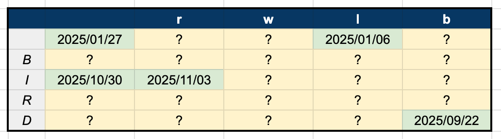 I am using the above 5x5 matrix to track the components; I’ll share more about this matrix in an upcoming post.