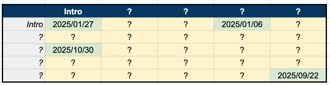 I am using the below 5x5 matrix to track the components; I’ll share more about this matrix in an upcoming post.